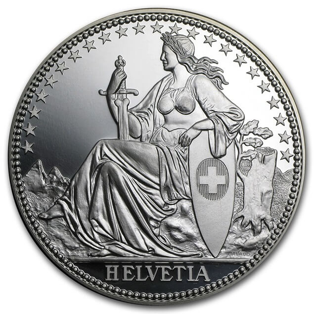 Гельвеция — так называется символ государства. Так назывался северо-запад страны, где в древности обитали племена гельветов. Гельвеция — мать народа Швейцарии. Она изображена в длинном платье с венком на голове, в руках держит копье и щит. Венок, украшающий ее голову — символ Конфедерации. В 1672 г. Иоганном Вайссенбахом был поставлен спектакль, героиней которого стала Гельвеция. В дальнейшем эта фигура идентифицировала всех граждан страны. На монетах государства чеканилось нейтральное название — Helvetia.