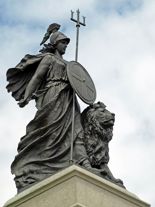В Британии сначала был создан флаг – «Union Jack», потом гимн – «Правь, Британия», который прославлял нацию. Еще позже появилось изображение государственного символа — Леди Британия. Это был символ основательницы великой морской державы. У ног примостился лев, подтверждая ее мощь.