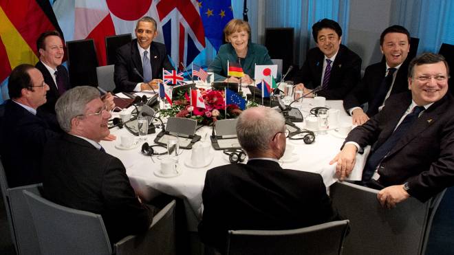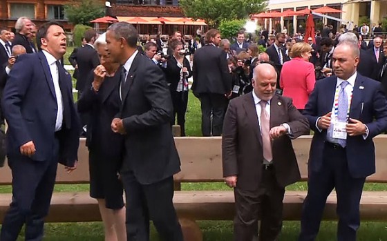 В прихожей, ожидая аудиенции, стоял премьер-министр Ирака Хайдер аль-Абади. Он заявил, что G7 «согласились совместно работать, чтобы и дальше противостоять терроризму». Как они будут это сделать? G7 не имеет ни малейшего понятия. «Мы пока не имеем законченной стратегии», сказал Обама в своих заключительных словах, «потому что она требует участия со стороны иракцев».