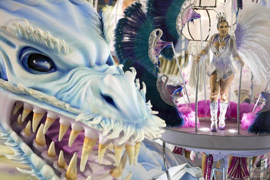 Не отказываются от участия в зрелищном представлении и бразильские знаменитости, которые часто выступают в роли королей или королев этого чудесного карнавала. Пестрой и блестящей праздничной одеждой – в первую очередь яркими стразами и пышными перьями-боа – или ее частичным отсутствием удивляют многочисленных благодарных зрителей, купивших туры в Рио-де-Жанейро, разновозрастные и часто многонациональные участники шествия. Все они идут вслед за гигантскими платформами-повозками, на которых располагаются необычные декорации в виде странных птиц, фантастических драконов и даже настоящих окатывающих холодной водой зрителей фонтанов.