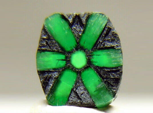 Там же встречаются и изумруды Трапиче, они уникальны и выглядят следующим образом: темная шестиконечная звезда окружена изумрудной оболочкой, или шесть лучей, которые из центра кристалла отходят к краям. Сегодня они встречаются только в Колумбии, и всего на двух рудниках, это Гачала и Музо. В шестигранных призмах этой удивительной разновидности изумрудов имеются углеродные включения, которые, по мнению ученых, образовались внутри от повышенной температуры, которая была в земной толще во время формирования кристаллов, и именно это – причина их звездообразной формы.
