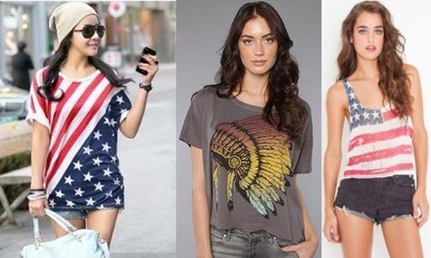 Американский стиль предполагает продуктивную и практичную одежду, в которую входят футболки, рубашки и майки с самыми разными принтами. Это так же, как и в Америке, популярно на всем белом свете. Самыми стильными и модными изображениями являются: