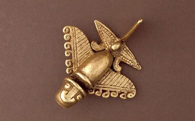 В экспозиции музея, который располагается в здании государственного банка Колумбии, можно увидеть фигурки, изготовленные из чистого золота. Они очень похожи на красивых птичек. Их размер всего один-четыре сантиметра. Ученые обнаружили их во время проведения научно-археологических экспедиций, которые занимались раскопками захоронений вождей индейских племен. Предположительно, они были использованы как украшения в виде брошей. Но также существует гипотеза, что это - древние амулеты. Исследователи датировали их пятым столетием до нашей эры.